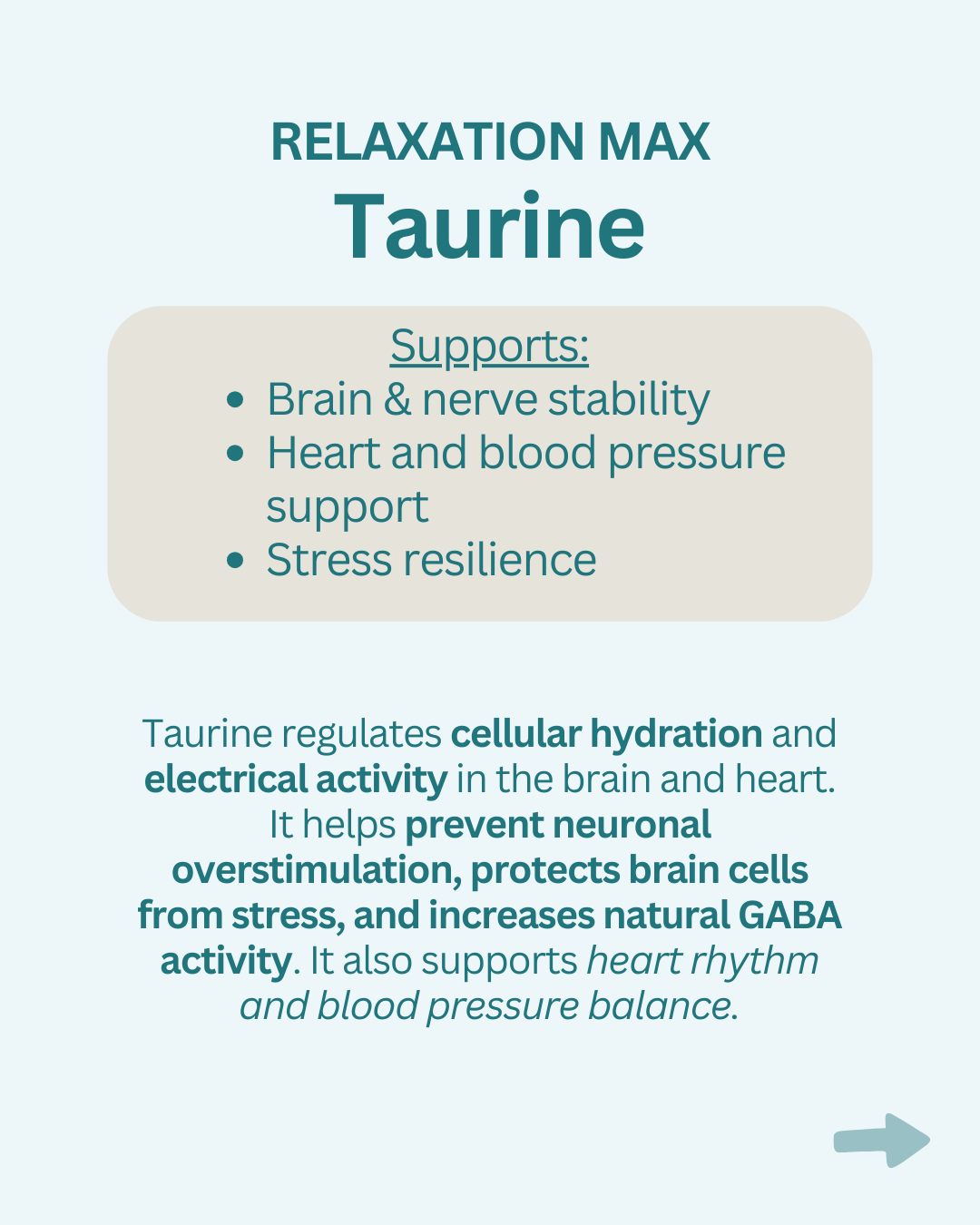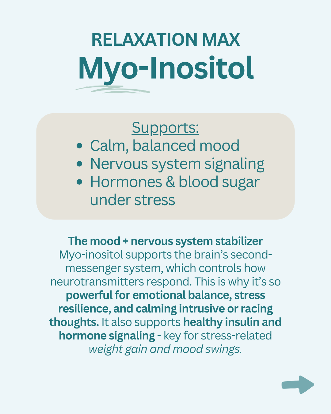 - Myo-Inositol, GABA, Taurine, L-Theanine (Suntheanine®), Magnesium